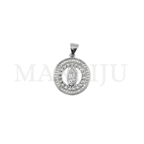 Rhodium-Plated Pendant – Our Lady of Guarda Lupe, 17mm.