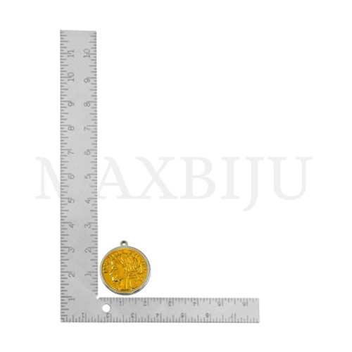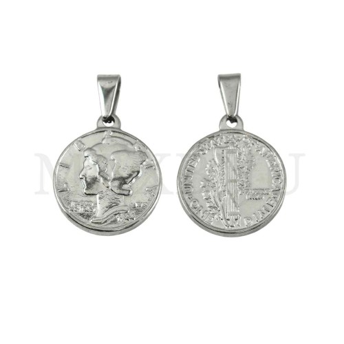 Stainless Steel Hispan Et Ind Rex Coin Pendant 18mm Thickness 2,1mm. Quantity per package: Sold Individually..