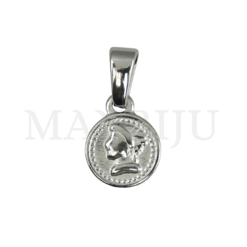 Stainless Steel Hispan Et Ind Rex Coin Pendant 9mm Thickness 2,1mm. Quantity per package: Sold Individually..