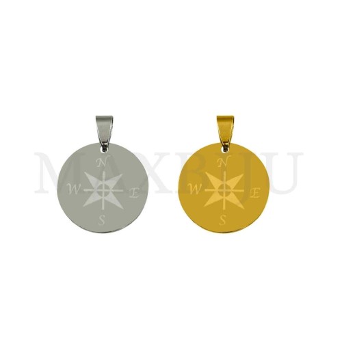 Stainless Steel Compass Rose Pendant 25mm Thickness 1,8mm. Quantity per package: Sold Individually..