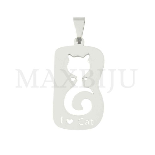 Stainless Steel "I Love Cat" Pendant 29x15mm