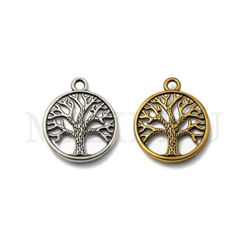 Metal Pendant - Tree 20mm Thickness 1,8mm Quantity per Package: - 13 Pieces Silver Color; - 12 Pieces Old Gold Color;..