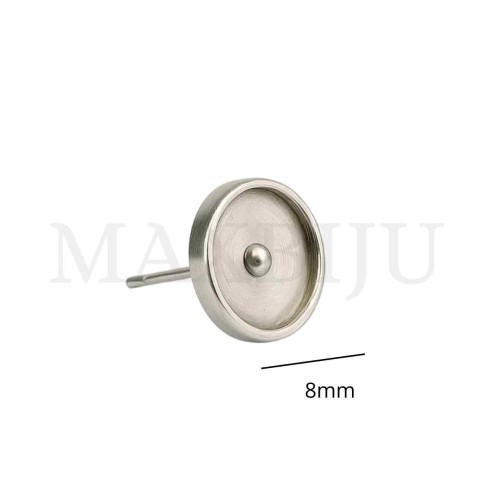Stainless Steel Round Earring Base for Cabochon. Interior diameter of 8mm. Quantity per package: - 40 pieces silver...