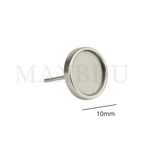 Stainless Steel Earring Base for Cabochon. Diameter of 10mm. Quantity per package: - 8 pieces silver; - 4 pieces gold...