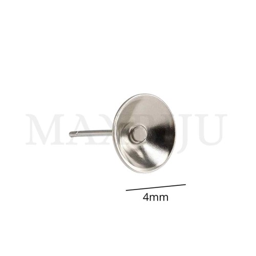 Stainless Steel Round Earring Base for Cabochon. Interior diameter of 4mm. Quantity per package: - 60 pieces silver...