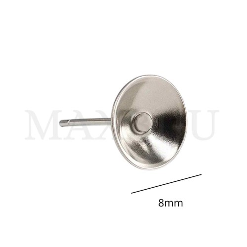 Stainless Steel Earring Base for Cabochon. Interior diameter of 8mm. Quantity per package: - 10 pieces silver...