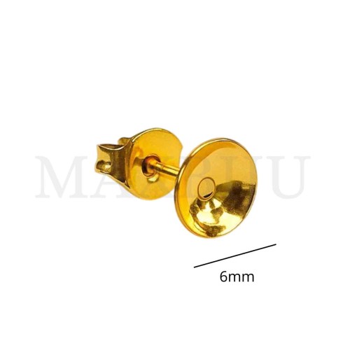 Stainless Steel Earring Base for Crystals. Interior diameter of 6mm. Quantity per package: - 14 pieces silver; - 6 pieces gold...