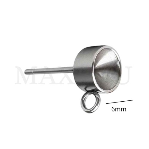 Stainless Steel Round Earring Base for Cabochon. Interior diameter of 6mm. Quantity per package: - 50 pieces silver...