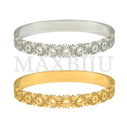 Stainless Steel "Sunflower Pattern Bracelet" Diameter - 6cm Thickness - 6mm Quantity per package: Sold Individually..