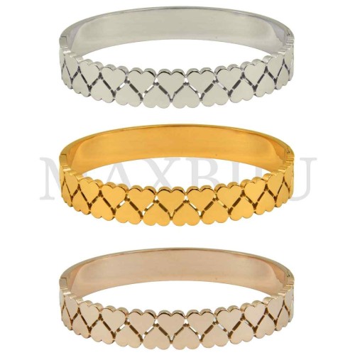 Stainless Steel "Heart Pattern Bracelet" Diameter - 6cm Thickness - 8mm Quantity per package: Sold Individually..