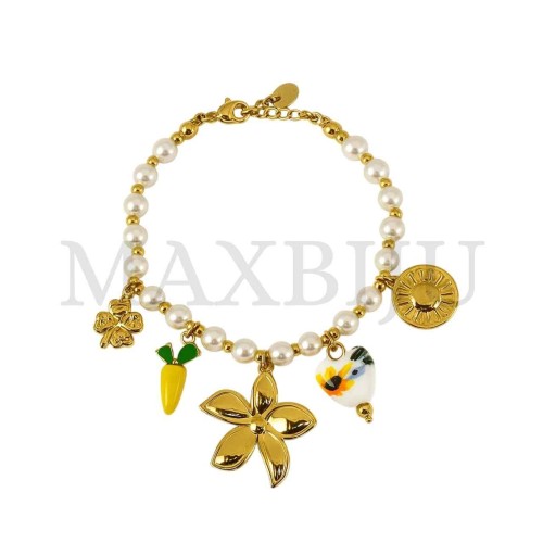Stainless Steel "Pearl Bracelet With Flower Pendant"