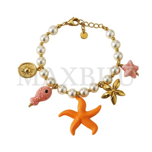 Stainless Steel "Starfish Pendant Pearl Bracelet" Diameter - 20cm Pendant - 34x29mm Bead - 6mm Quantity per package: Sold Individually..