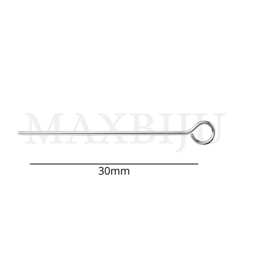 Steel Eye Pins 30mm length and 0.7mm thickness. Quantity per package: - 10g (+/-95 pieces) silver; - 10 pieces gold...