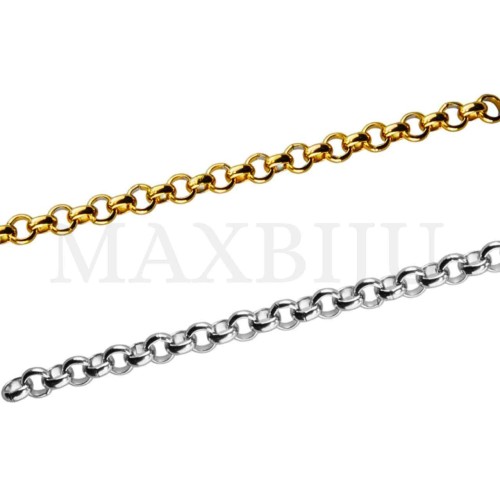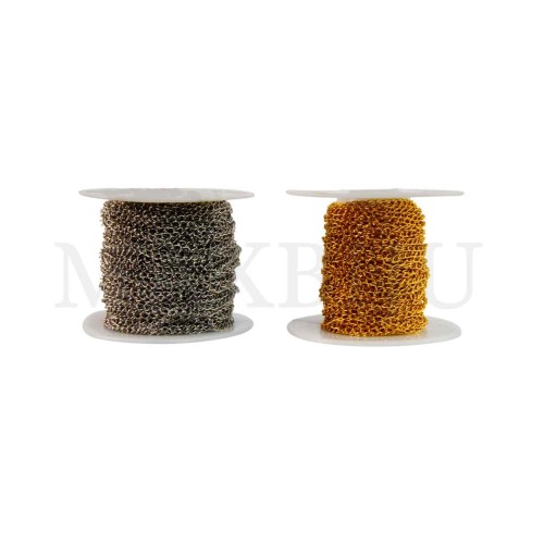 2.5mm Steel Belcher Links Chain - Coil. Quantity per package: - 20 meters silver; - 10 meters gold...