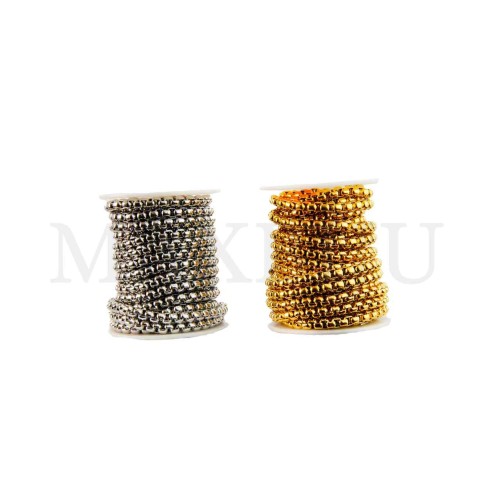 3.0mm Steel Box Chain - Coil. Quantity per package: - 10 meters silver; - 10 meters gold...