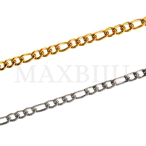 2.5mm NK 1:1 Steel Figaro Links Chain - Coil. Quantity per package: - 5 meters silver; - 5 meters gold...