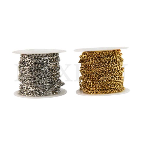 0.6mm Steel Flat Oval Plate Links Chain - Coil. Quantity per package: - 20 meters silver; - 10 meters gold...