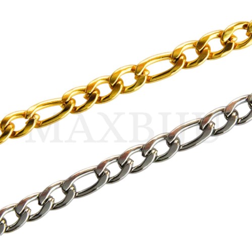 0.8mm NK 3:1 Steel Figaro Links Chain - Coil. Quantity per package: - 10 meters silver; - 10 meters gold...