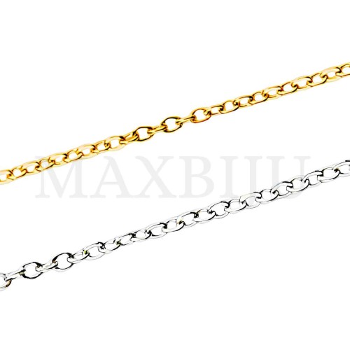 2.0mm Steel Oval Links Chain - Coil. Quantity per package: - 5 meters silver; - 5 meters gold...
