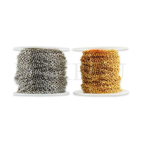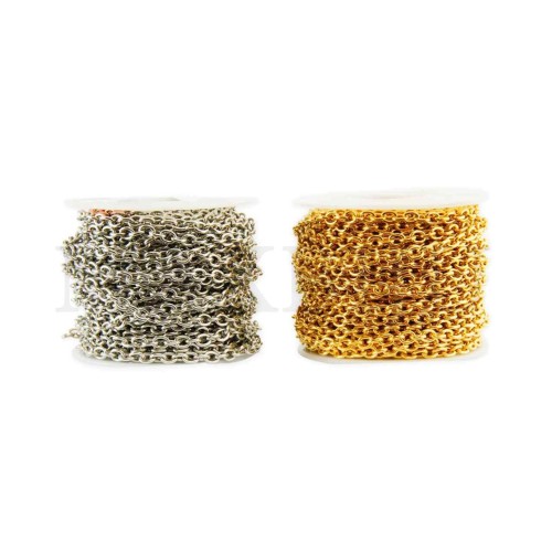 0.3mm Steel Oval Links Chain - Coil. Quantity per package: - 20 meters silver; - 10 meters gold...