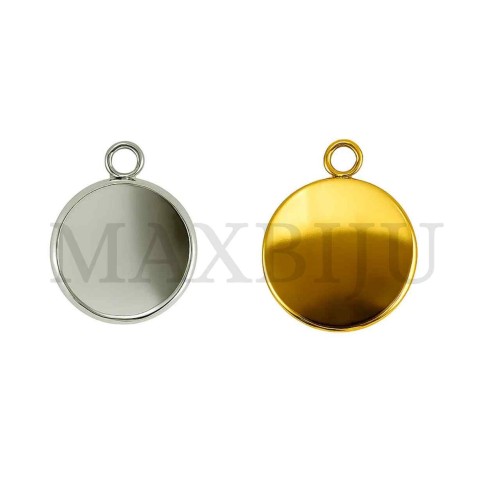Stainless Steel Pendant Base for Cabochon. Interior diameter of 20mm. Quantity per package: - 10 pieces silver; - 4 pieces gold...