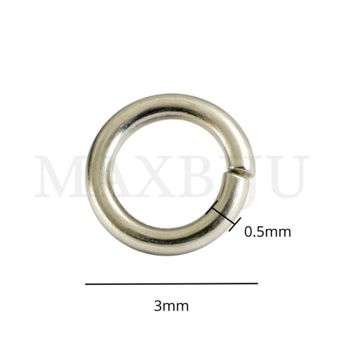 Stainless Steel Open Jumprings for connecting pieces. 3mm exterior diameter and 0.5mm thickness. Quantity per package: - 8g (+/- 800 pieces) silver; - 30mm (+/- 140 pieces) gold...