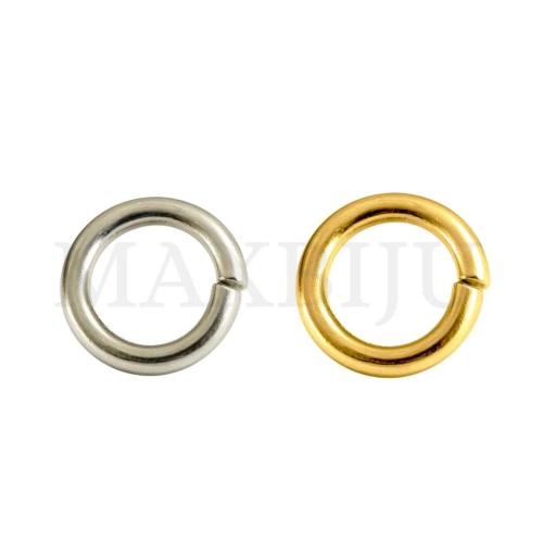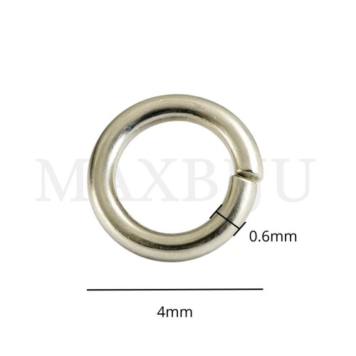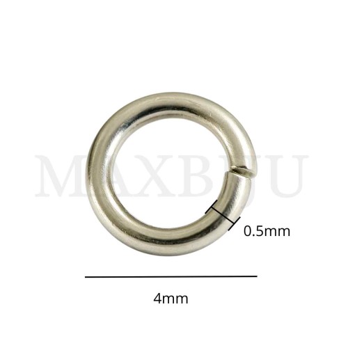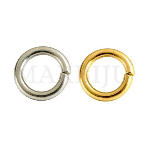 Stainless Steel Open Jumprings for connecting pieces. 4mm exterior diameter and 0.5mm thickness. Quantity per package: - 10g (+/- 710 pieces) silver; - 30mm (+/- 95 pieces) gold...