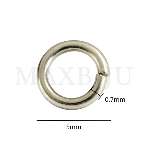 Stainless Steel Open Jumprings for connecting pieces. 5mm exterior diameter and 0.7mm thickness. Quantity per package: - 20g (+/- 500 pieces) silver; - 30mm (+/- 80 pieces) gold...