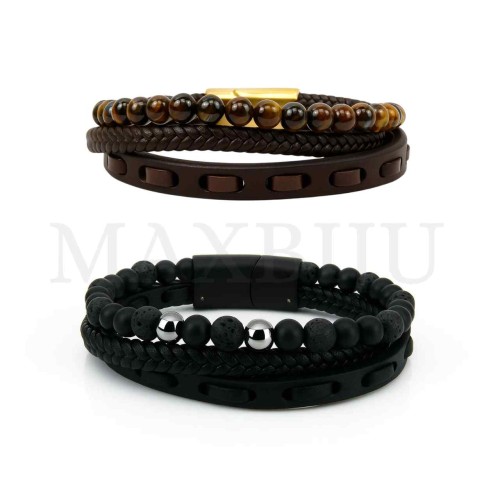 Stainless Steel "Braided Leather Bracelet" Diameter - 21cm Bead - 5mm Quantity per package: Sold Individually..