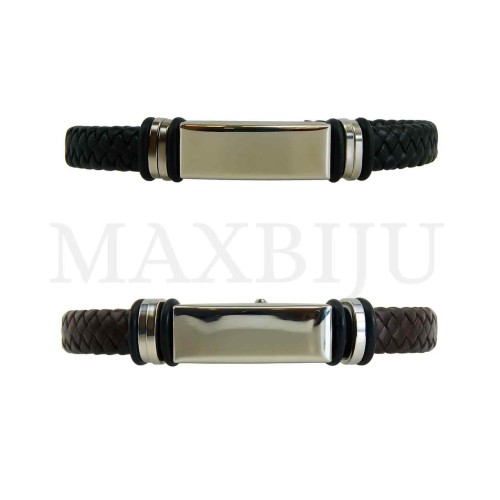 Stainless Steel "Braided Leather Bracelet" Diameter - 21cm Spacer - 10x38mm Quantity per package: Sold Individually..