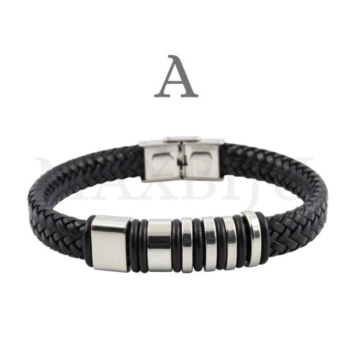 Stainless Steel "Braided Leather Bracelet" Diameter - 21,50cm Spacer - 11x50mm Quantity per package: Sold Individually..