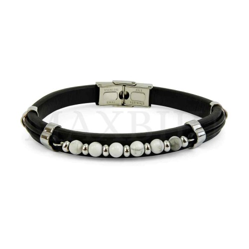 Stainless Steel "Leather Bracelet" Diameter - 21cm Bead - 3mm Quantity per package: Sold Individually..
