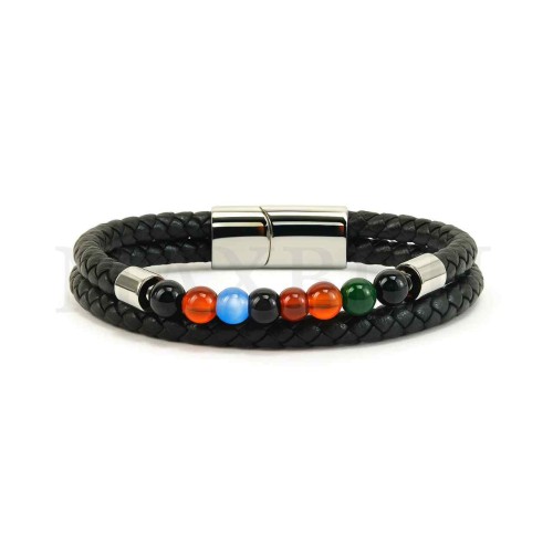 Stainless Steel "Braided Leather Bracelet" Diameter - 21,50cm Bead - 4mm Quantity per package: Sold Individually..