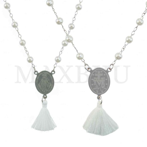 Stainless Steel Rosary of "Nossa Senhora da Graça" 50cm Pendant - 10x14mm Bead - 3mm Quantity per Package: Sold Individually...