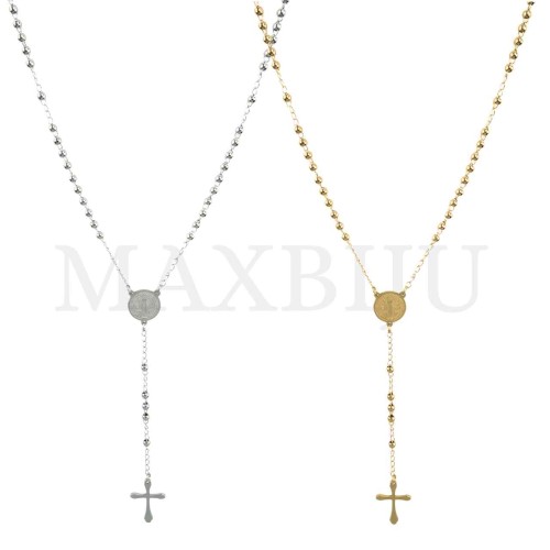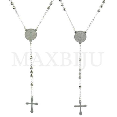 Stainless Steel Rosary of "São Bento" 50cm Pendant - 10x10mm Cross - 12x19mm Bead - 2mm Quantity per Package: Sold Individually...