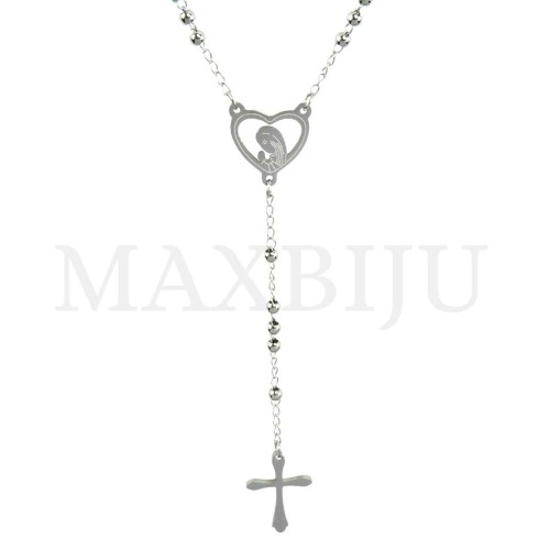 Stainless Steel Rosary of "Nossa Senhora de Fátima" 55cm Heart - 13x12mm Cross - 12x19mm Bead - 2mm Quantity per Package: Sold Individually...
