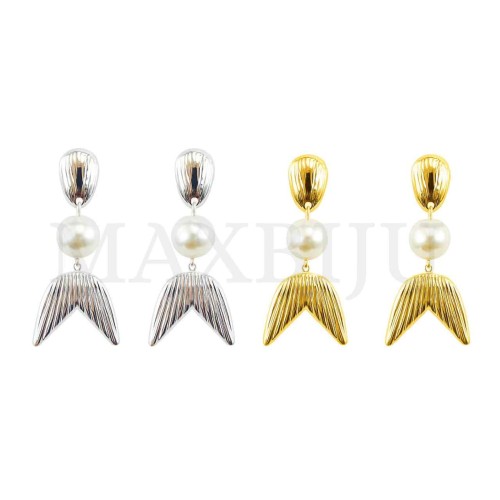 Stainless Steel Whale Tail Earrings with Pearls Quantity per Package: Sold Individually...