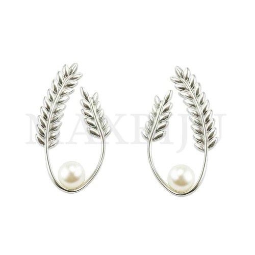 Stainless Steel Leaf Branch Earrings with Pearls Quantity per Package: Sold Individually...