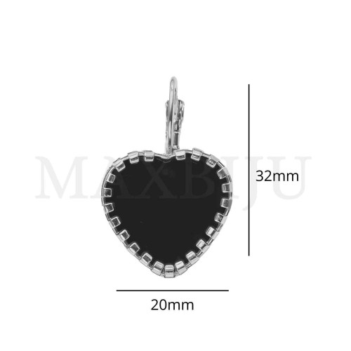 Metal Base for Heart Earrings with Edge with Fastening Clips 20x32mm Insider diameter 16mm Quantity per package: - 5g/10g (+/- 8 pieces) silver color;..
