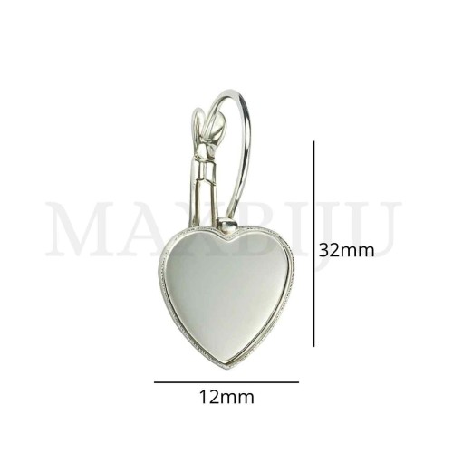 Metal Base for Heart Earrings with Edge Fastening Clips 20x32mm