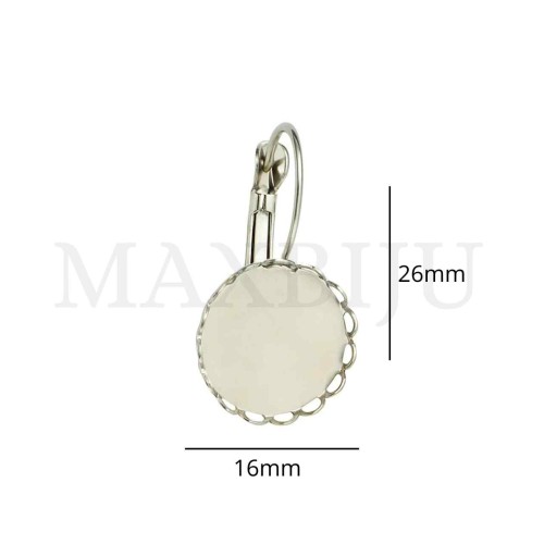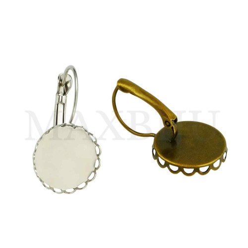 Metal Earring Base for Cabochon 18x29mm Insider diameter 16mm Quantity per package: - 5g/10g (+/- 6 pieces) silver color; - 5g/10g (+/- 6 pieces) bronze;..