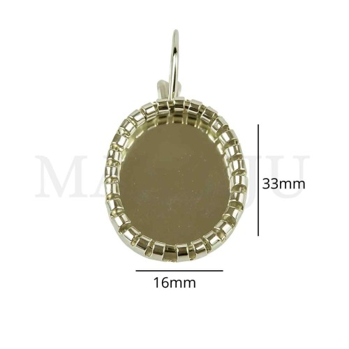 Metal Base Oval for Earrings with Edge Fastening Clips 16x33mm Insider diameter 12x16mm Quantity per package: - 5g/10g (+/- 8 pieces) silver color; - 5g/10g (+/- 8 pieces) bronze;..