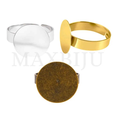 Metal Ring Base for crafts. 18mm diameter. Adjustable ring. Quantity per package: - 6 pieces nickel; - 6 pieces bronze; - 6 pieces gold.