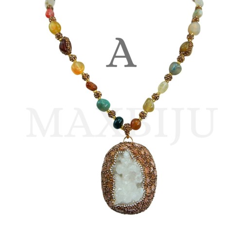 Metal Necklace with Natural Stone - 80cm