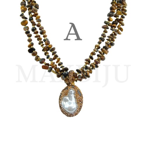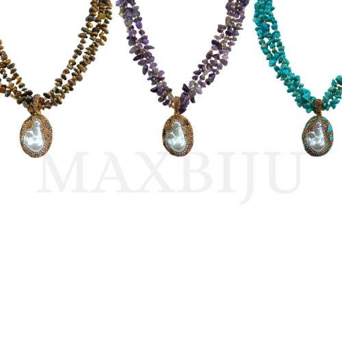 Metal Necklace with Natural Stone - 50cm Quantity per Package: - Sold Individually;..