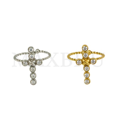 Stainless Steel Adjustable Ring - Cross Cross - 12x23mm; Thickness - 2mm; Quantity Per Package: Sold Individually..