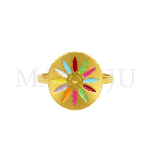 Stainless Steel Adjustable Ring - Sun Pendant - 15x15mm Thickness - 2mm; Quantity Per Package: Sold Individually..