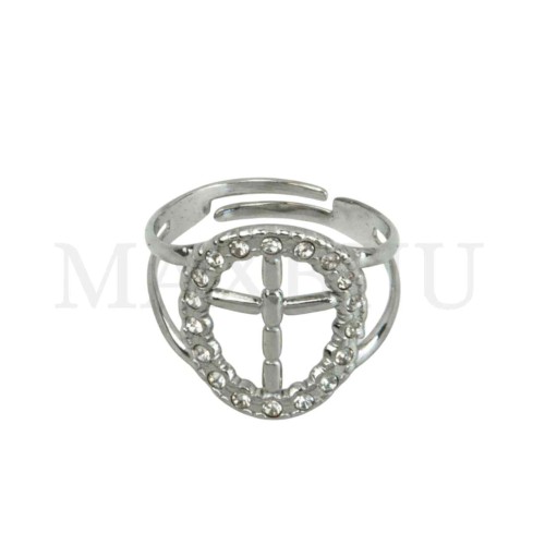 Stainless Steel Adjustable Ring - Cross Pendant - 14x16mm; Thickness -4mm; Quantity Per Package: Sold Individually..