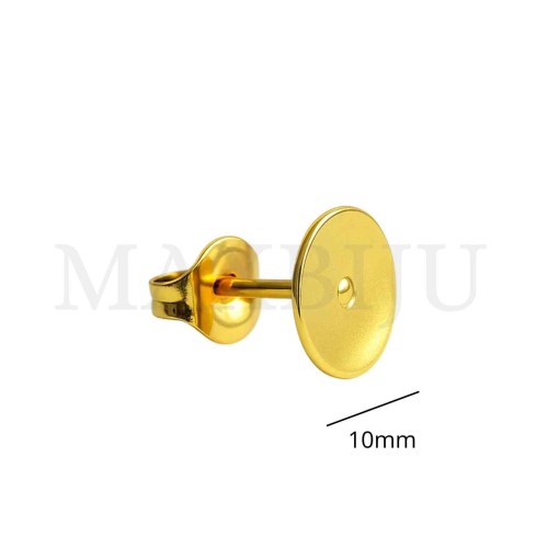Stainless Steel Earring Base with hole. Diameter of 10mm. Quantity per package: - 16 pieces silver; - 6 pieces gold...