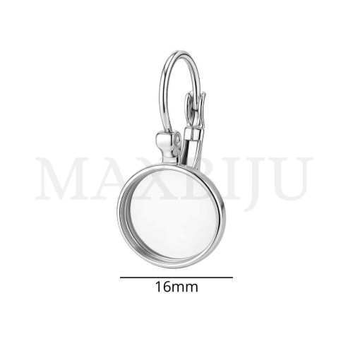 Steel Leverback Earring Base for Cabochon 16mm